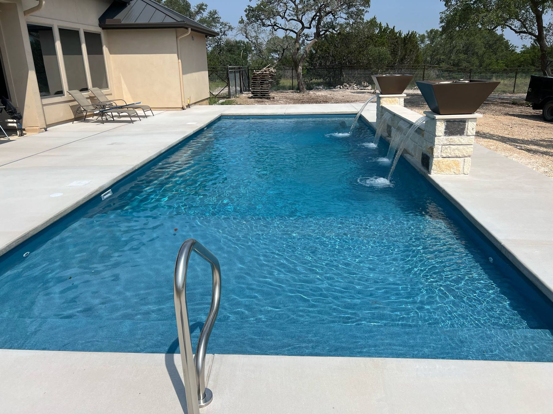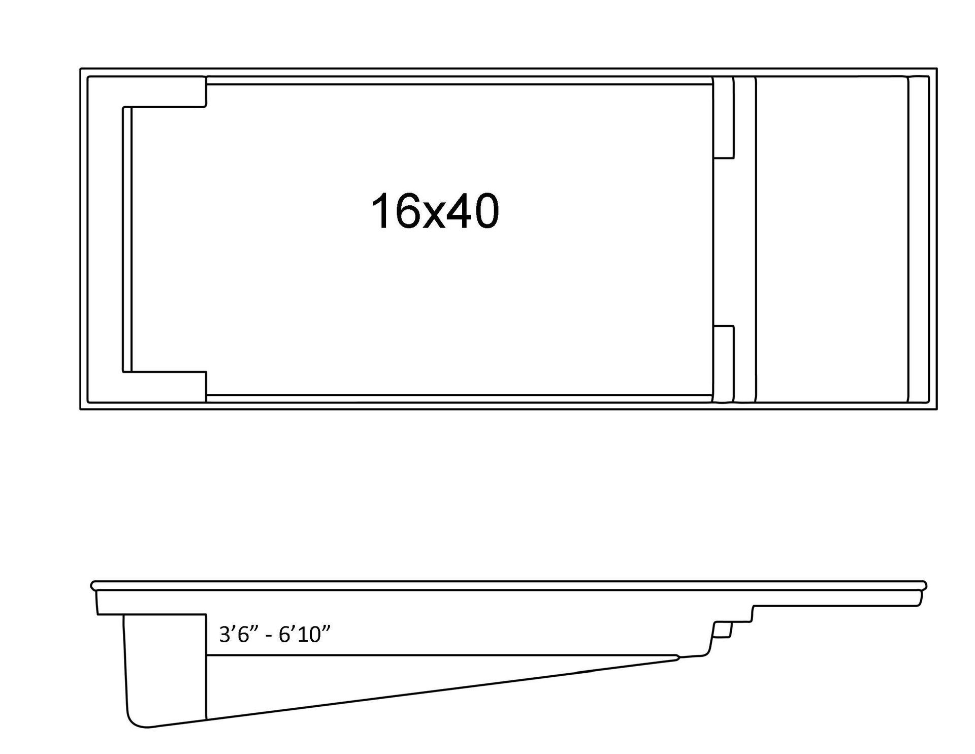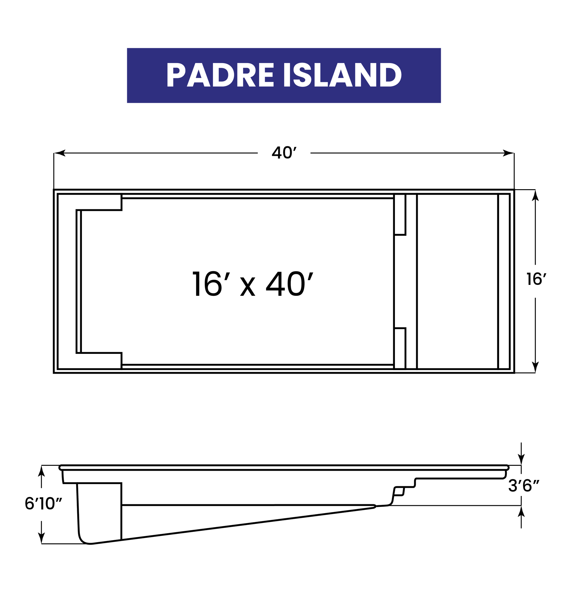 The Padre Island is a sleek and spacious 16' x 40' design, with a graduated depth ranging from 3’6” to 6’10”, it’s ideal for both relaxed lounging and more spirited swimming.