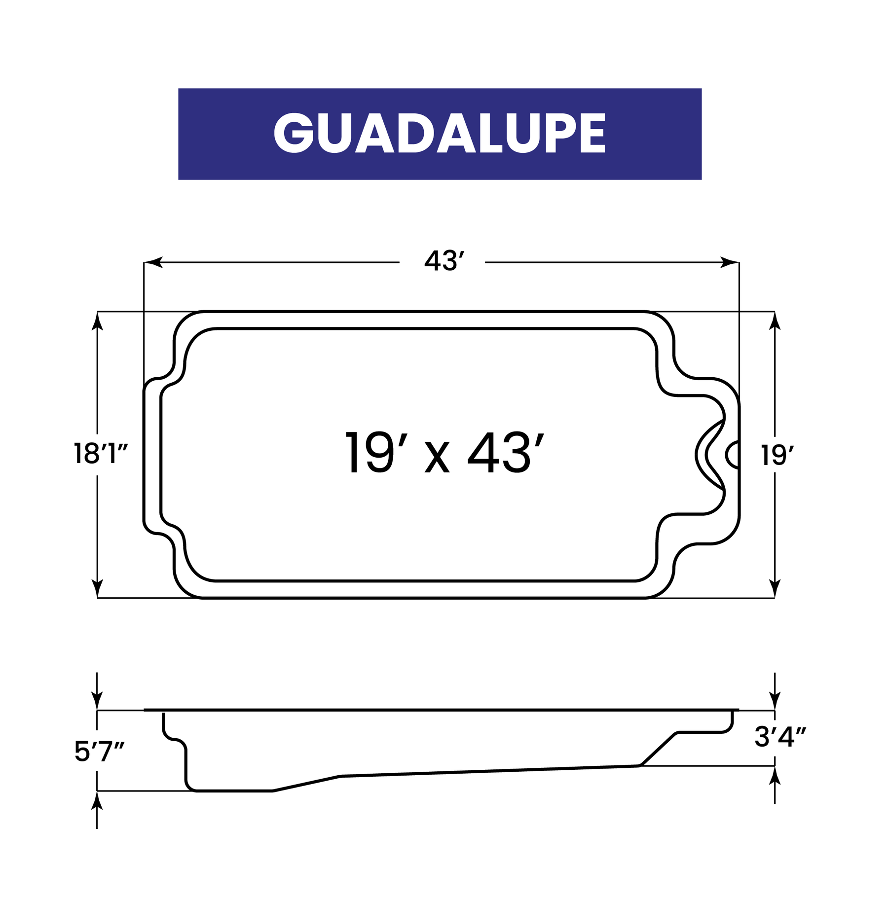 A New Model Now Available Exclusively from American Fiberglass Pools. This is truly the LARGEST fiberglass pool available in the world. With inside dimensions a true 19 x 43 ft., you will have lots of room to swim, perform water aerobics, swim laps, and enjoy a cool dip during the long, hot, humid, summertime. No other fiberglass pool available offers you over 760 sq. ft. of pure uninterrupted aquatic enjoyment. Just like the river of its name, the Guadalupe will offer you a lifetime of gentle water induced relaxation.