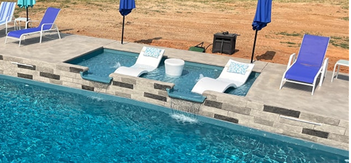 American Fiberglass Pools offers three tanning ledge options, designed to complement their pool models: Luckenbach, Fredericksburg, and Marble Falls Ledge.